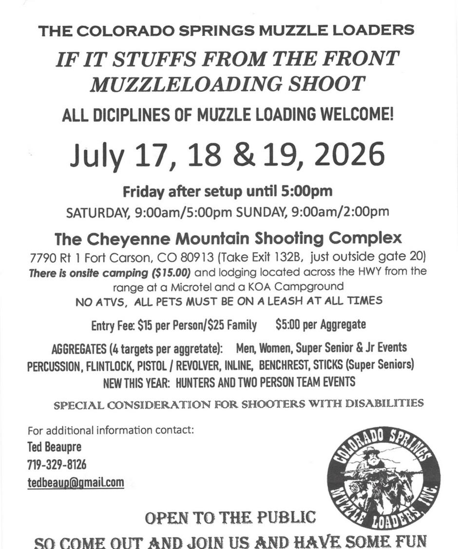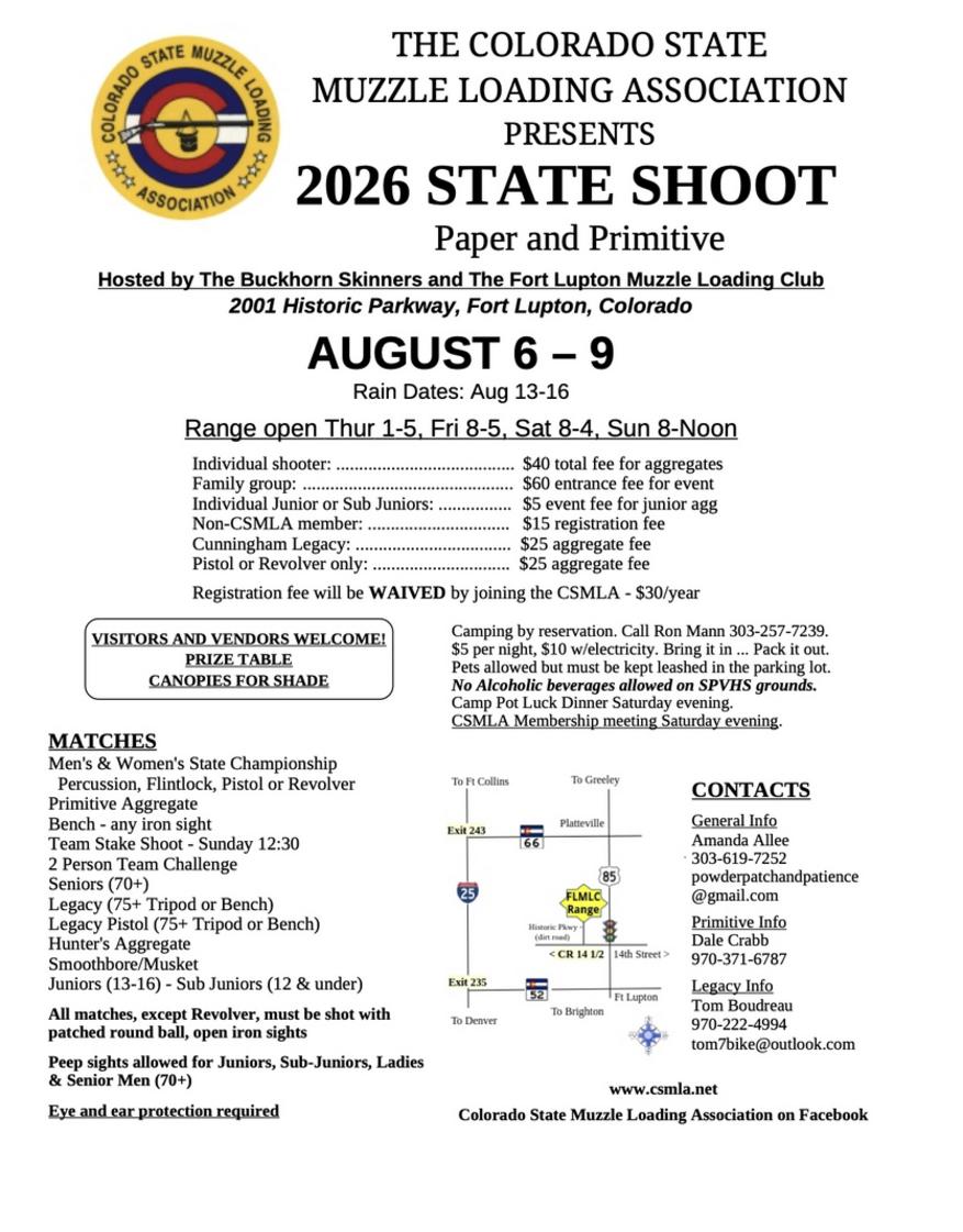 Aug 6th - 9th COLORADO STATE MUZZLE LOADING SHOOT...FORT LUPTON