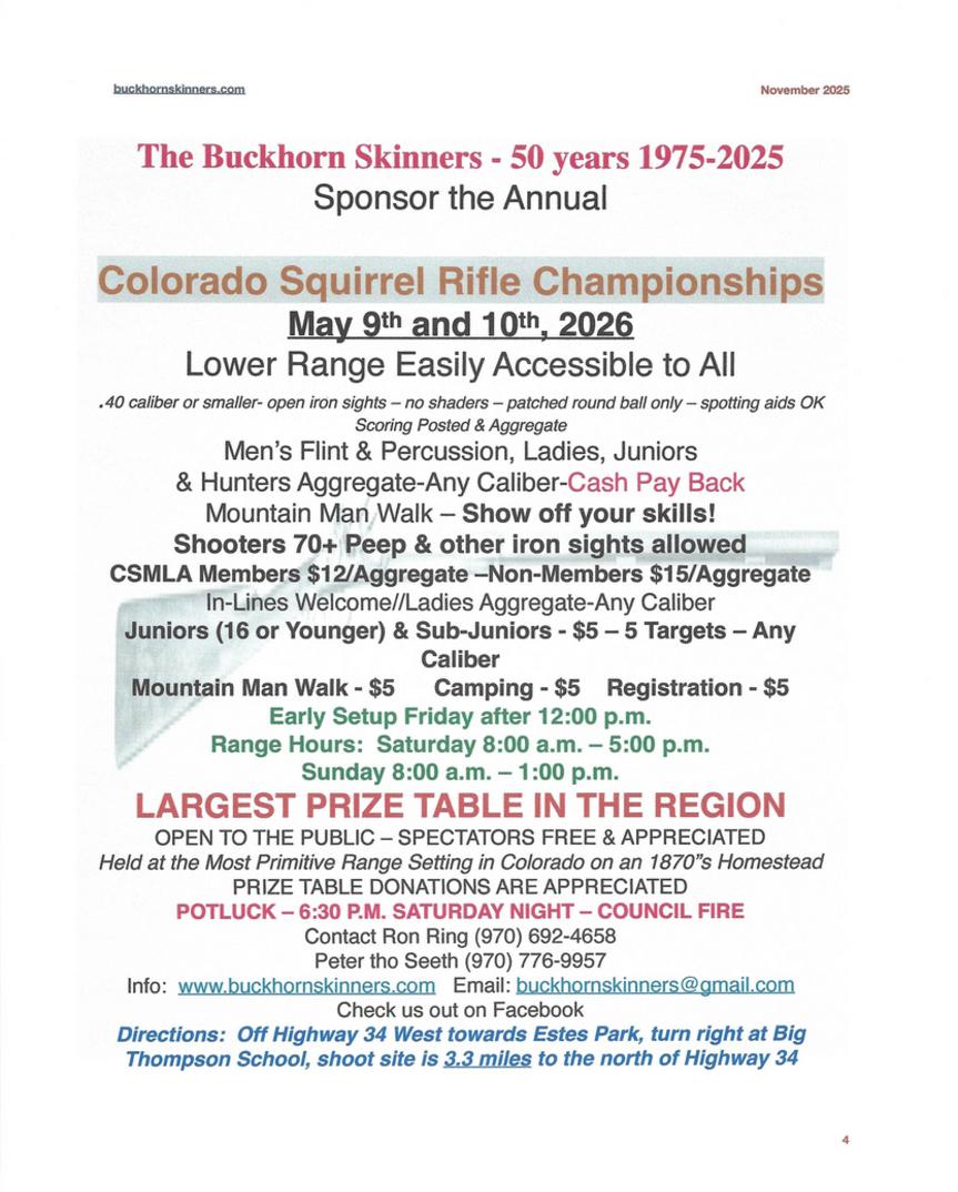 May 8th - 10th 2025 Annual Squirrel Rifle Championship Shoot..... ALL SKINNERS